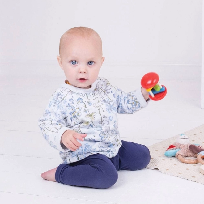 Dúhový valec Bigjigs Baby je nadčasová drevená hrkálka, ktorá zaujme sýtymi farbami aj príjemným zvukom. Tri farebné bloky sa pri kotúľaní alebo trasení hojdajú a jemne narážajú do opôr, čím dieťa motivujú k ďalšiemu skúmaniu, uchopovaniu a pohybu.
