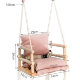 Štýlová detská hojdačka pre deti od 12 mesiacov s mäkkými vankúšmi z materiálu CLEANABOO, ktorý nevsakuje tekutiny. Bezpečné drevené prevedenie so zaoblenými hranami, pevnými lanami a bezpečnostným pásom pre pohodlné a pokojné hojdanie doma.