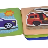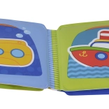 Umývateľná pískacia knižka do kúpeľa – dopravné prostriedky, 10 × 10 cm