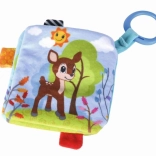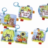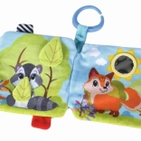 Mäkká knižka Forest Friends prináša farebné ilustrácie líšky, medvedíka čistotného, veveričky či medvedíka, ktoré prirodzene podporujú vizuálne vnímanie a prvé zoznamovanie sa so svetom zvierat. Textilné spracovanie je bezpečné a príjemné na dotyk, takže je ideálne pre bábätká od prvých mesiacov.