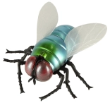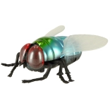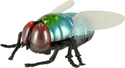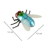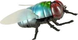 Metalické modro‑zelené telo, červené oči a priehľadné krídla robia z hračky vernú napodobeninu muchy – perfektné na žartíky aj výučbu.