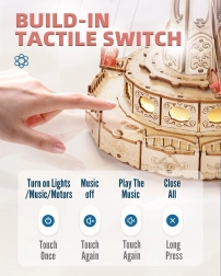 Vďaka dotykovému ovládaniu možno samostatne riadiť pohyb aj hudbu, takže si zážitok prispôsobíte nálade. Stredná náročnosť, približne 6 hodín stavby a 289 dielikov z kvalitného dreva a kovu robia z modelu skvelý darček pre kreatívnych tínedžerov aj dospelých. Po dokončení sa stane štýlovou dekoráciou poličky, pracovne či obývačky.