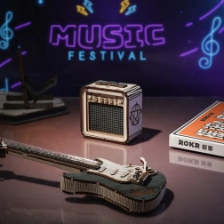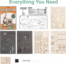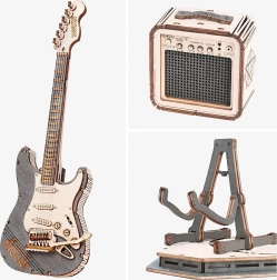 Toto drevené 3D puzzle elektrickej gitary poteší všetkých milovníkov hudby aj elegantných dekorácií. Model je navrhnutý na vystavenie – bez pohyblivých častí, s čistým prírodným vzhľadom a precízne vyrezanými detailmi, ktoré vyniknú v každom interiéri.