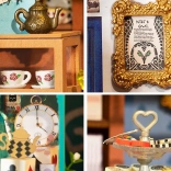 Objavte miniatúrny svet plný fantázie – do zelena ladený obchod s čajom s motívmi bieleho králika, vreckových hodín a šachovnicovej podlahy vytvára atmosféru európskeho popoludňajšieho čaju. Po rozsvietení LED osvetlenia sa model premení na očarujúcu dekoráciu s príjemnou večernou náladou.