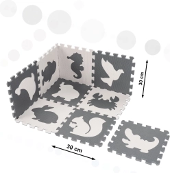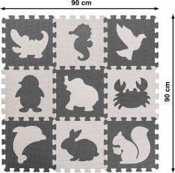 Penená detská vzdelávacia podložka puzzle zvieratká, sivá 85 × 85 cm, 9 dielov