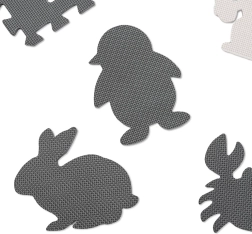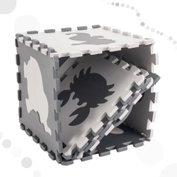 Vytvorte pre svoje dieťa bezpečné a podnetné miesto na hranie. Táto penová podložka z EVA sa skladá z 9 navzájom prepojiteľných dielov s vyberateľnými tvarmi zvieratiek a ponúka mäkký a tlmiaci povrch, protišmykovú úpravu a vodoodolnosť. Neutrálny sivý a ecru odtieň skvele zapadne do každého interiéru.