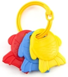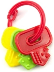 Ľahká a ľahko uchopiteľná hrkalka v tvare kľúčov je ideálna pre najmenšie rúčky. Tri plastové prívesky vydávajú príjemný hrkajúci zvuk, ktorý upúta pozornosť bábätka a pomáha rozvíjať jeho zmysly. Odolné prevedenie je vhodné na každodenné hranie doma aj na cestách.