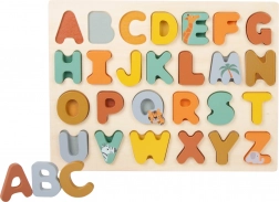 Toto kvalitné drevené puzzle v moderných pastelových farbách ponúka 26 vystúpených písmen, ktoré deti ľahko uchopia, vložia do správneho otvoru a naučia sa tak abecedu prirodzene a hravo. Roztomilé motívy safari – zebra, žirafa, slon či tiger – motivujú k objavovaniu a zábave každý deň.