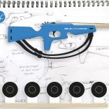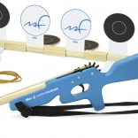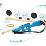 Drevená puška je vybavená nastaviteľnými textilnými popruhmi, ideálne pre každé dieťa. Balenie obsahuje päť sklápacích terčov a dvadsať gumičiek pre opakovanú streľbu. Skúste nastaviť terče na rôznu vzdialenosť a vyskúšajte svoju presnosť!
