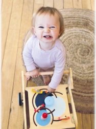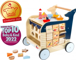Vydajte sa na prieskum s dreveným chodítkom v tvare veľryby. Toto chodítko nielen pomáha deťom s prvými krokmi, ale tiež poskytuje rôzne interaktívne hračky, ktoré podporujú rozvoj motoriky.