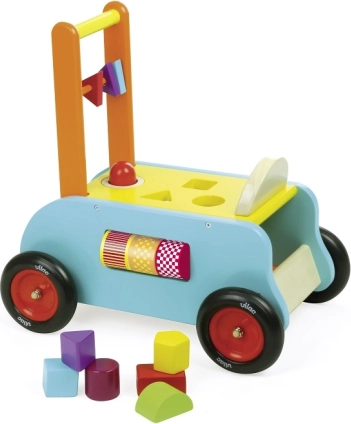 Toto multifunkčné drevené vozítko 3v1 je skvelým parťákom pre deti od 12 mesiacov. Ako chodítko pomáha s prvými krôčikmi, ako odrážadlo posilňuje stabilitu a koordináciu a ako vkladacia hračka rozvíja logické myslenie aj jemnú motoriku. Robustná drevená konštrukcia a veľké gumové kolesá zabezpečujú istotu a plynulú jazdu doma aj na hladkom povrchu.