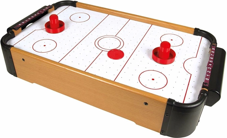 Stôl má pevný drevený rám, integrované bránky, manuálne posuvné počítadlo skóre na oboch stranách a dodáva sa s dvoma ťahadlami a pukom. Hra rozvíja koncentráciu, koordináciu oko–ruka a fair play.