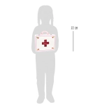 Veselé motívy jahôdok na nástrojoch a textilnej čelenke s červeným krížom zaujmú deti a podporia ich v hre.