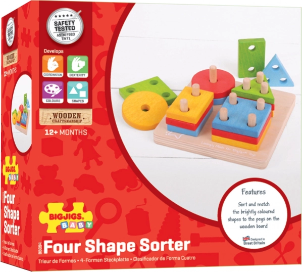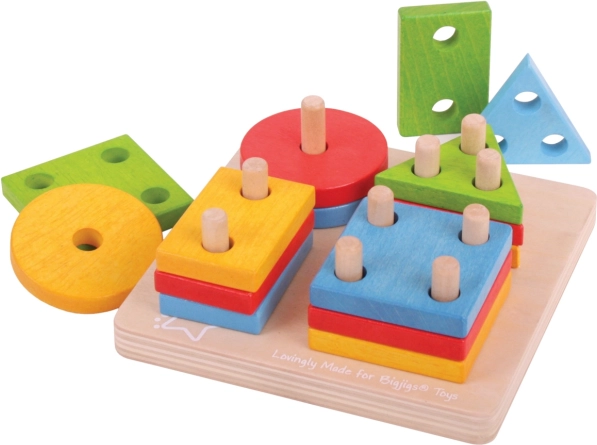 Nasadzovanie tvarov na kolíky trénuje úchop, koordináciu ruka–oko aj trpezlivosť. Ideálna prvá didaktická hračka pre malých objaviteľov.