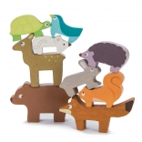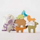 Táto drevená skladačka lesných zvieratiek z kolekcie PETILOU je navrhnutá pre najmenších objaviteľov. Deti môžu stavať líšku, zajaca, ježka, medveďa, myš, korytnačku, veveričku, kolouška a vtáčika do zábavnej veže, precvičovať rovnováhu a objavovať, ako veža rastie – a občas aj s úsmevom spadne. Vďaka príjemnej veľkosti sú figúrky perfektné do detských rúčok.