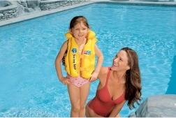 Detská plavecká vesta INTEX je ideálnou pomôckou pre deti od 3 rokov, ktoré sa učia plávať. Vďaka svojmu výraznému farebnému prevedeniu zaručuje perfektnú viditeľnosť vašich detí na vode, čo umožňuje rodičom ľahko sledovať ich pohyb a hry v bazéne, jazere alebo mori.