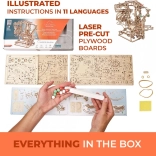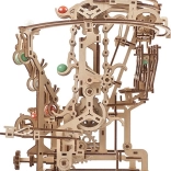 Objavte zábavu aj technickú eleganciu so stavebnicou UGEARS – drevenou mechanickou guľôčkovou dráhou s reťazovým pohonom. Ručný mechanizmus rozhýbe farebné guľôčky po troch unikátnych úsekoch s prekážkami, zatiaľ čo otvorená konštrukcia umožní obdivovať prevody a ozubené kolá v akcii. Model možno prepojiť s ďalšími sadami pre ešte veľkolepejšiu dráhu. Perfektná voľba pre tvorivých nadšencov, ktorí milujú výzvy a precízne drevené modely.