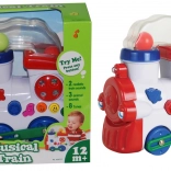 Táto hravá hudobná mašinka prináša deťom množstvo podnetov a zábavy. Jednoduché ovládanie pomocou tlačidla v tvare hviezdičky spustí jazdu mašinky, počas ktorej z komína vylietajú balóniky. Realistické zvuky vlaku, farebné svetlá a pestré melódie prirodzene rozvíjajú sluch, zrak aj motoriku.