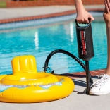 Pri každom ťahu – nahor aj nadol – prúdi do výrobku vzduch. Výrazne tak skrátiťe čas nafukovania oproti bežným ručným pumpám.
