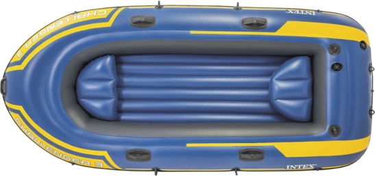 Nafukovací čln INTEX Challenger 3 je ideálnou voľbou na pokojn é vychádzky po jazere, pohodové splavy rieky aj ľahké rybárčenie. Vďaka nízkej hmotnosti sa ľahko prenáša a skladne vojde do kufra auta. Robustný PVC materiál s hrúbkou 0,50 mm v kombinácii s tromi samostatnými vzduchovými komorami a Boston ventilmi zabezpečuje bezpečie, stabilitu a jednoduché nafukovanie aj vyfukovanie.