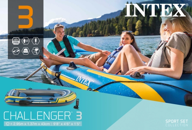 Objavte spoľahlivý nafukovací čln INTEX Challenger 3 na rekreáciu na vode aj rybárčenie. Ponúka kapacitu pre 3 osoby (do 255 kg), 3 vzduchové komory s Boston ventilmi, mäkké nafukovacie dno a záchranné lano po obvode. V balení sú 2 hliníkové pádla, výkonná ručná pumpa a opravná sada. Možnosť montáže elektromotora pre ešte pohodlnejšiu plavbu.