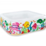 Nafukovací bazén inšpirovaný podmorským svetom je ideálnym doplnkom na letné dni. Je vyrobený z vysoko kvalitného vinylu s hrúbkou 0,28 mm, čo zaručuje jeho odolnosť a dlhú životnosť. Vďaka opravnej záplate dodávanej v balení je pripravený na neočakávané situácie.