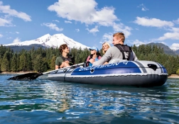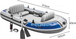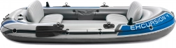 Nafukovací čln Excursion 4 pre štyri osoby je navrhnutý pre pohodlie a bezpečnosť na vode. Je vyrobený z odolného PVC s hrúbkou 0,75 mm a má tri vzduchové komory, ktoré zaisťujú vysokú nosnosť a stabilitu. Umožňuje pripojenie elektrického motora, čo umožňuje dlhšie výlety bez väčšej námahy.
