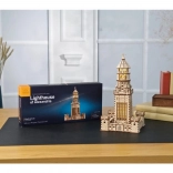 Objavte krásu antickej architektúry s funkčným 3D modelom Alexandrijského majáka. Detailné laserové gravírovanie imituje kameň a šindle, vrchol zdobí reliéf Dia s bleskom a v podstavci nájdete otváracie brány ovládané otočnými gombíkmi. Po rozsvietení LED sa maják premení na efektnú nočnú lampu a štýlovú dekoráciu.