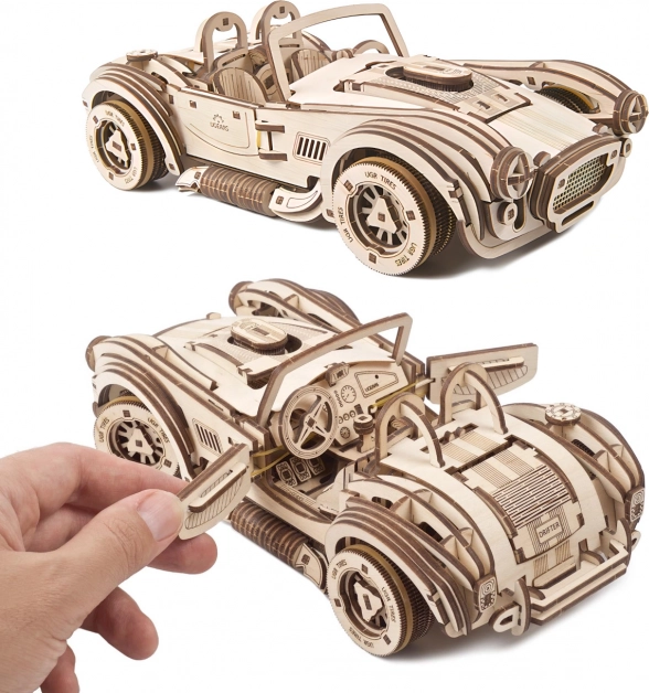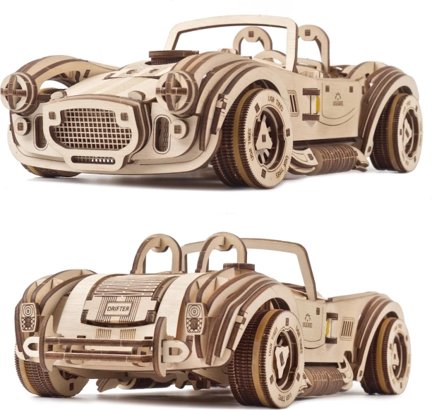 Užívajte si autentický zážitok zo stavby a jazdy. Drevená mechanická stavebnica UGEARS Drift Cobra obsahuje 370 laserom presne vyrezaných dielikov, ktoré do seba zapadajú bez lepidla. Po zložení získate riaditeľný model s funkčným pružinovým motorom, brzdou riadenia a prevodovkou pre voľnobeh aj spiatočku.