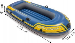 Ľahký a odolný nafukovací čln INTEX Challenger 2 je ideálny na rekreačné vychádzky na pokojnej vode. Ponúka priestor pre dve osoby, nosnosť 170 kg, 3 vzduchové komory pre bezpečie a mäkké nafukovacie dno pre pohodlie. Súčasťou balenia sú 2 ľahké pádla, ručná piestová pumpa, držiaky na pádla, zádržné lano a opravná sada.