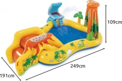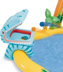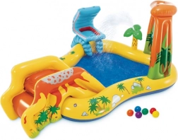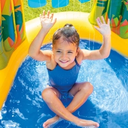 Urobte zo svojej záhrady malý aquapark! Toto detské nafukovacie vodné ihrisko 5v1 od INTEX kombinuje bazén, šmykľavku, fontánu, vodnú clonu a vodný basketbal. Vďaka odolnej konštrukcii, rýchlej inštalácii a bezpečnému prevedeniu prináša nekonečnú letnú zábavu pre deti od 2 rokov.