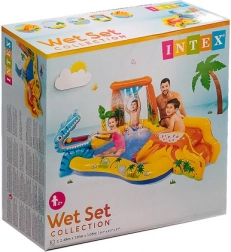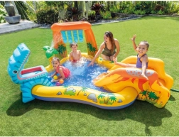 Premeňte horúce dni na dokonalú zábavu. Nafukovacie vodné ihrisko INTEX ponúka päť atrakcií v jednom: plytký bazénik na vyvádzanie, mäkkú šmykľavku s polstrovaným dojazdom, osviežujúcu fontánu a vodnú clonu napojené na hadicu a tiež zábavný vodný basketbal s farebnými loptičkami. Vďaka univerzálnym rozmerom sa hodí na záhradu, terasu aj na cesty na pláž.