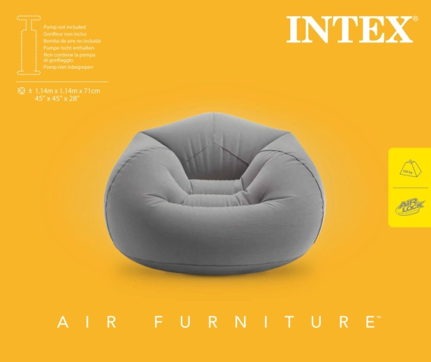 Vďaka nafukovacej konštrukcii je kreslo ideálne do obývačky, študentskej izby, na chatu aj do kancelárie pre relax zónu. Ľahko sa nafukuje aj vyfukuje, takže ho bez námahy prenesiete a uložíte. Sivé prevedenie sa hodí k väčšine dekorov a zvýrazní čisté línie moderného bývania.