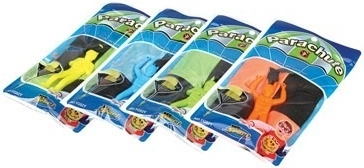 Parašutista hračka v štyroch farebných variantoch ponúka veľa zábavy pre deti aj dospelých. Ideálna pre použitie na otvorených priestranstvách ako sú lúky alebo ihriská.