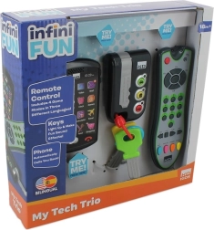 Trio set TECH TOO kombinuje tri obľúbené interaktívne hračky: kľúče Klic Klac, TV ovládač Zip Zap a detský smartphone. Deti si s nimi užijú realistickú hru na dospelých, naučia sa rozpoznávať zvuky a rozvíjajú jemnú motoriku aj predstavivosť. Každá hračka je vybavená svetelnými a zvukovými efektmi pre maximálne zaujetie.
