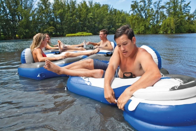 Vyrobené z vopred testovaného masívneho vinylu. Približná veľkosť 1,30 m x 1,26 m. Nie je to hračka, slúži na rekreačný šport. Pevné držadlá. Jednoducho pripojiteľné k ďalším produktom River Run. Dve vzduchové komory, držiak na nápoj. Opravná záplata priložená.