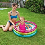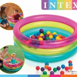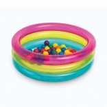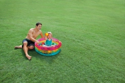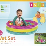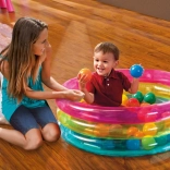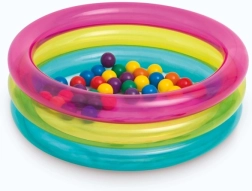 Súčasťou balenia je 50 loptičiek (Ø 6,5 cm), ktoré lákajú na hranie, hádzanie aj triedenie farieb. Bazénik možno využiť ako suchý bazénik s loptičkami alebo naplniť malým množstvom vody na osvieženie v lete. Ľahké a skladné vyhotovenie z PVC umožňuje rýchle nafúknutie, prenášanie aj upratovanie.