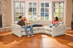 Táto moderná nafukovacia rohová sedačka poskytuje ideálne riešenie pre tých, ktorí hľadajú praktické a pohodlné sedenie. Je vyrobená z odolného vinylu s jemným materiálom na povrchu, ktorý prináša príjemný pocit pri sedení. Sedačka je ľahká na nafúknutie i vyfúknutie, čo uľahčuje jej prenášanie a uskladnenie. Vďaka svojmu elegantnému dizajnu sa perfektne hodí do akéhokoľvek interiéru.