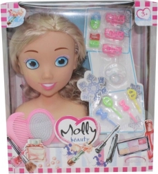 Hlava na česanie Bambolina Molly je perfektná hračka pre malé stylistky, ktoré milujú starostlivosť o vlasy. Dlhé, lesklé vlasy bábiky poskytujú nekonečné možnosti vytvárania účesov pomocou priložených doplnkov.