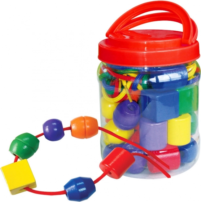 Veľké drevené korálky BABU sú skvelé na rozvoj jemnej motoriky a na rozpoznávanie farieb. Súprava obsahuje korálky rôznych tvarov, farieb a veľkostí, balené v praktickom plastovom kýbliku.