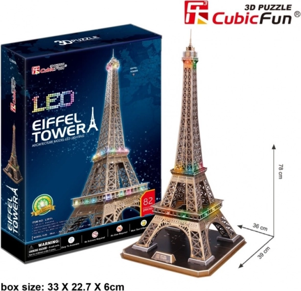 Postavte si doma ikonickú Eiffelovu vežu ako 3D puzzle z edície CUBICFUN s LED osvetlením. Diely z kvalitnej peny potiahnutej papierom ľahko zostavíte bez lepidla a nožníc, výsledný model vynikne ako štýlová dekorácia s impozantnou výškou 78 cm.
