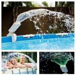 Vytvorte si doma čarovnú vodnú scénu – fontána do bazéna INTEX s LED osvetlením ponúka farebný vodný efekt, rýchlu inštaláciu bez náradia a bezpečnú prevádzku bez elektriny vďaka vstavanému hydrogenerátoru. Univerzálne uchytenie pasuje na rady Prism Frame a Ultra Frame a funguje s bežnými filtračnými pumpami.