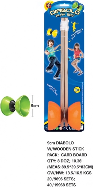 Diabolo je dostupné v štyroch živých farbách: zelenej, modrej, žltej a oranžovej, ktoré zaujmú a motivujú každého žongléra.
