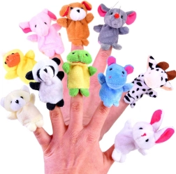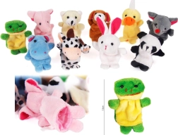 V balení nájdete obľúbené zvieratká: hrocha, myšku, psíka, medvedíka, žabku, sloníka, kravičku, pandu, zajačika a kačenku. Vďaka kompaktnej veľkosti sa maňušky ľahko nasadzujú na prst a hodia sa na cesty, do škôlky aj domov.