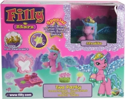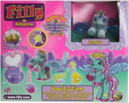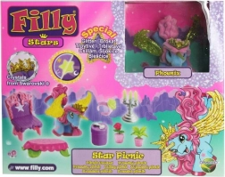 Sada Filly Stars pozýva deti do sveta plného fantázie. Koník s čarovným rohom, trblietavými krídlami a korunou s kryštálom inšpiruje k príbehom o priateľstve, oslavách aj čajových dýchánkoch. Vďaka pestrej palete doplnkov si deti ľahko vytvoria vlastné scénky a rozvíjajú predstavivosť aj jemnú motoriku.