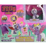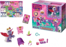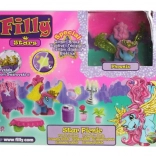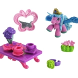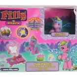 - figúrka Filly/plyšový jednorožec alebo koník, mini nábytok a dekorácie (stolík, stoličky, zrkadielko, doplnky)