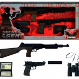 Policajná sada Top Secret obsahuje kovovú policajnú pištoľ, tlmič, ďalekohľad, policajný preukaz a policajnú pušku. Všetko je vyrobené z kovu. Všetko je na kapslíky – 8 rán. Vyrobené v Španielsku.