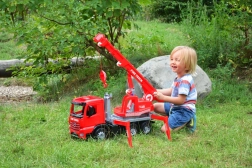 Tento červený autožeriav MERCEDES ACTROS od značky Lena nadchne všetkých malých staviteľov. Vďaka otočnému ramenu, funkčnému navijaku a lanku, výsuvným stabilizačným nohám a klinom na zaistenie kolies poskytuje deťom autentickú a bezpečnú hru s realistickými funkciami. Je vyrobený v SR z odolného plastu a je vhodný pre interiér aj exteriér.