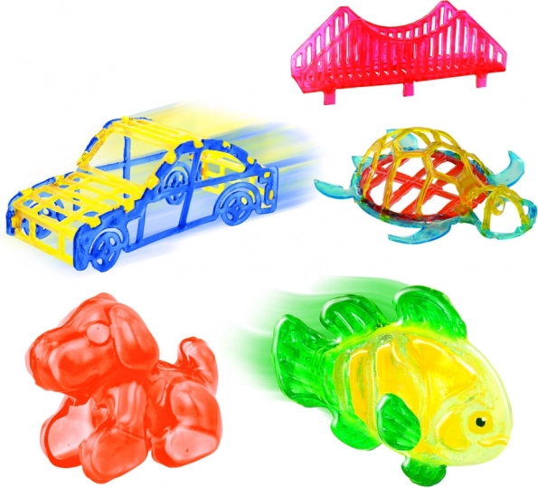 Štartovacia sada 3D Magic prináša jednoduchý a bezpečný spôsob, ako doma vytvárať vlastné 3D objekty – od zvieratiek a autíčok až po mini stavebné dieliky. Stačí vyplniť formu 3D gélom, vložiť do 3D Makeru a sledovať, ako UV svetlo premení váš nápad na pevný model.