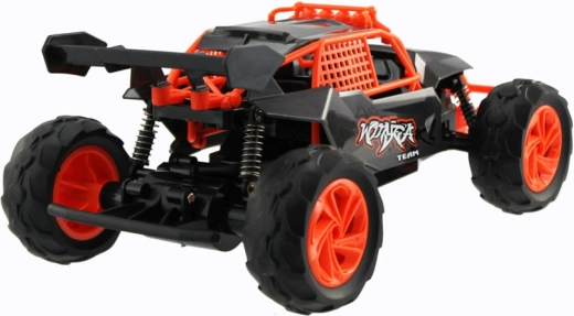 Výkon až 20 km/h vás vtiahne do akcie, či už jazdíte vonku na štrku, tráve alebo hline. Absorpčné tlmiče na prednej aj zadnej náprave plynule žehlia nerovnosti, takže máte nad buginou kontrolu aj v náročných podmienkach. Odolná plastová karoséria a ochranný rám chránia voz pri pádoch a nárazoch.